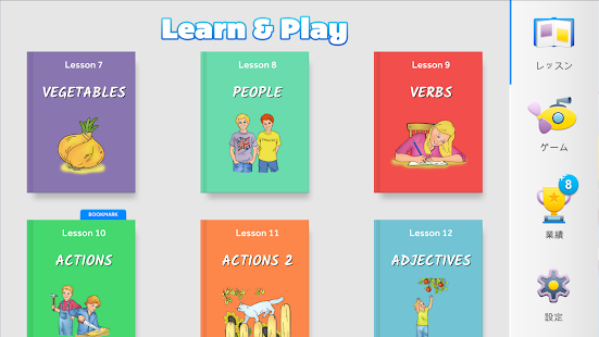 カラフルなイラストのゲームで子供がより英語学習を楽しめます。