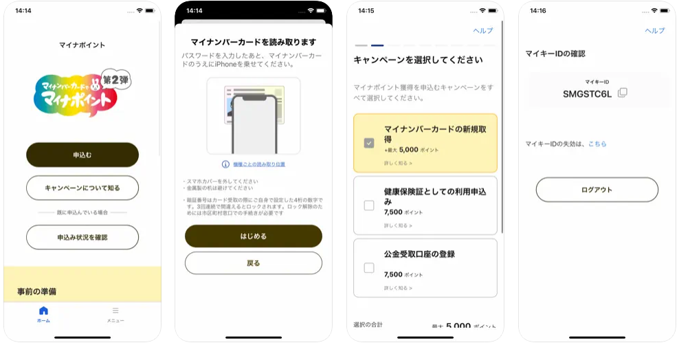 マイナポイントの申込を行うことができるiPhoneアプリです。