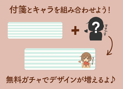 人気キャラクターと付箋紙を自由に組み合わせましょう。 お気に入りの組み合わせデザインを見つけてください。 完全無料で回せるガチャから、新たなイラストが飛び出します。