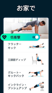 低衝撃オプションも利用できます。肥満気味の方や関節に問題のある方に優しいオプションです。ジムの必要なし、器具も一切必要なし。体重を使って脂肪を減らして筋肉をつくります。グラフで燃焼したカロリーを追跡したり、減量の進捗を追跡することができます。