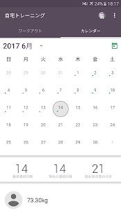 カレンダーはあなたのワークアウトの進捗状況をログに記録しますので、あなたは意欲を維持します。 また、ウェイトチャート上であなたのウェイト傾向を見ることができます。