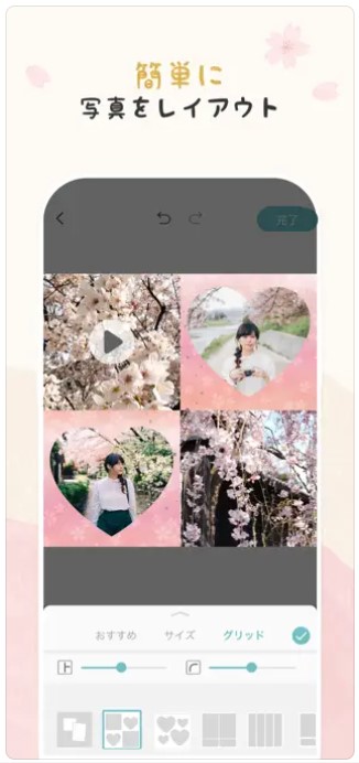- 1️⃣ 最大50枚の写真を追加可能。コラージュ作成に必要な機能全てカバー済み!