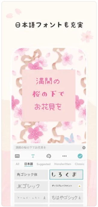 スタンプは3万種類以上、背景デザインは1万種類以上、テンプレートは1万5千種類以上をご用意。 - 4️⃣ 160種類以上のフォントから気分に合わせて自由に文字入れ