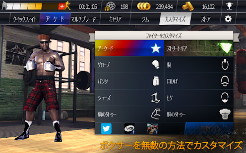 アンロック可能な多数のヘアスタイル、タトゥー、装備で君だけのファイターを作り上げよう。様々なミニゲームでトレーニングを積み、コンディションを維持しながら、次から次へと挑戦者と戦い、トップに上りつめよう。